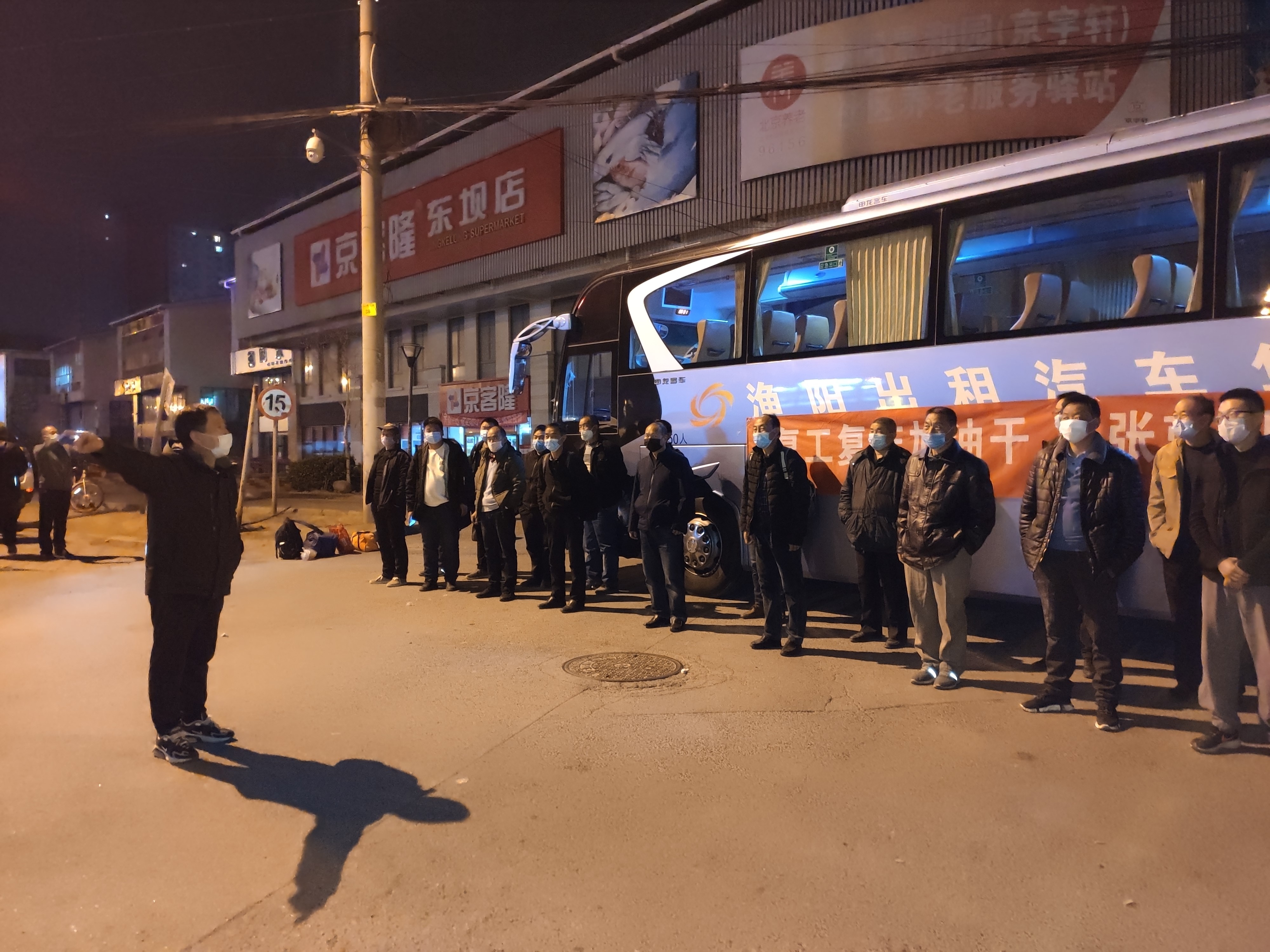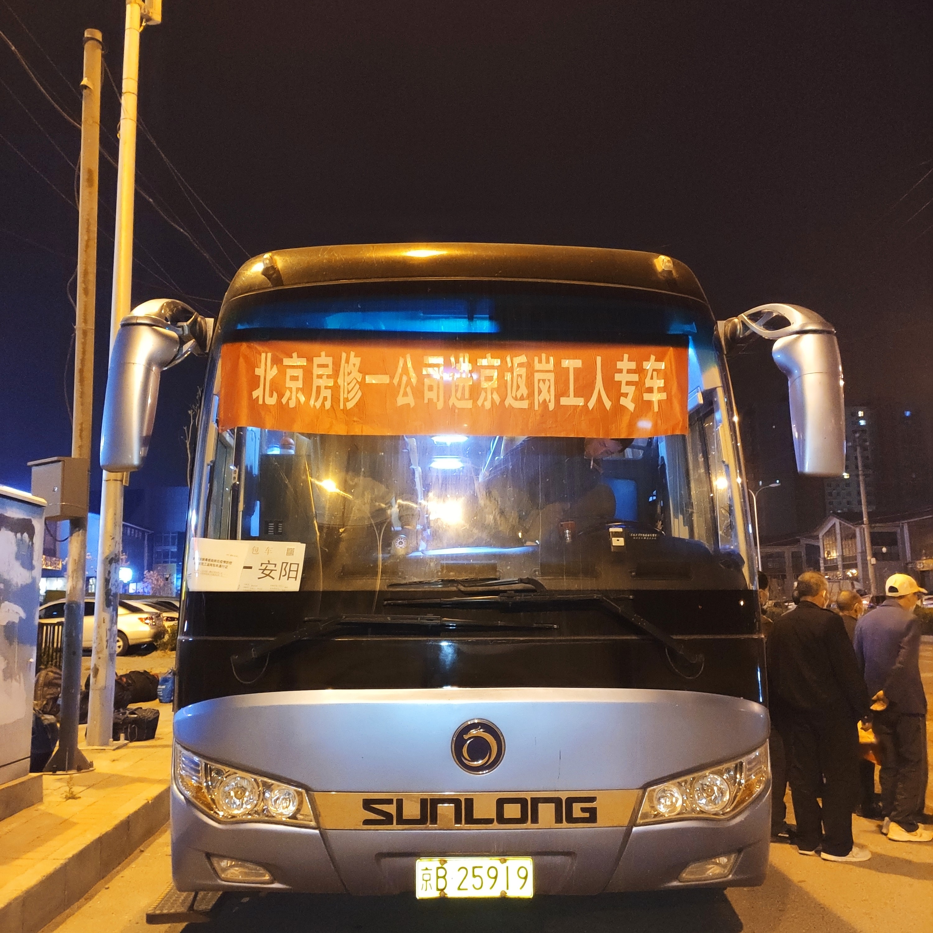 項目部制定了詳細的工作流程和方案,通過租用大巴車方式,往返于北京和河南省安陽市,對勞務(wù)人員進行點對點接送,并提前準(zhǔn)備了食品、礦泉水以及口罩,保證勞務(wù)人員返京途中的飲食及防護。