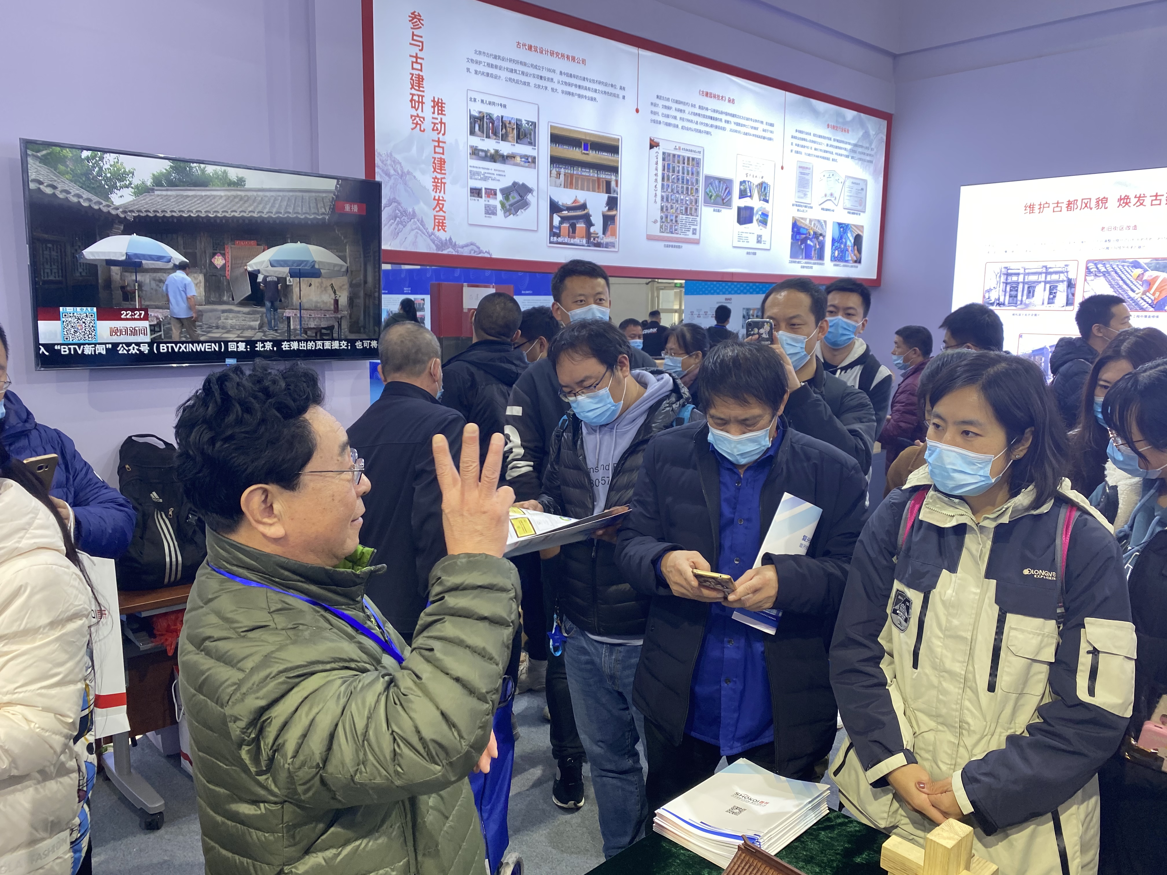 走進北京首開集團房地古建工作室展示區(qū),古建專家組負責人張世祥熱情地為大家介紹了公司在古建方面的發(fā)展及具有特色的古建工程項目。他表示:希望能借助此次博覽會的平臺,通過現(xiàn)場木作、彩畫、油作等實操互動,讓大家在參觀、體驗過程中學到古建知識,更好地傳播古建筑傳統(tǒng)文化。