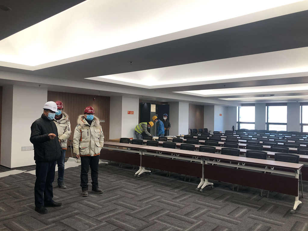 房地大廈裝修改造項(xiàng)目負(fù)責(zé)人殷兆鵬對(duì)項(xiàng)目施工進(jìn)度情況及后續(xù)工作安排、施工現(xiàn)場(chǎng)防疫措施、防疫重點(diǎn)及難點(diǎn)等方面進(jìn)行了詳細(xì)匯報(bào)。郭桂勇同志在了解了施工現(xiàn)場(chǎng)的各項(xiàng)情況后,對(duì)項(xiàng)目的進(jìn)展及一線同志們的辛苦付出給予了充分肯定,并提出幾點(diǎn)要求:一是要加大工程建設(shè)管理力度,創(chuàng)造“房地質(zhì)量”,及時(shí)解決施工中遇到的問(wèn)題,創(chuàng)造順暢有序施工環(huán)境,確保在施項(xiàng)目的安全、質(zhì)量、進(jìn)度、成本、文明施工等各項(xiàng)目標(biāo)順利實(shí)現(xiàn);二是要加強(qiáng)黨支部與項(xiàng)目屬地的黨建和團(tuán)建活動(dòng),黨員同志要帶頭發(fā)揮作用,全身心投入到一線工作中;三是要愛(ài)護(hù)人才、關(guān)心人才。郭桂勇同志表示:房地大廈裝修改造項(xiàng)目在疫情期間有條不紊的順利施工,這與項(xiàng)目全體同仁在各自崗位中的不懈努力是分不開(kāi)的。他向元旦期間仍然奮戰(zhàn)在生產(chǎn)一線的廣大干部職工致以了節(jié)日的問(wèn)候。