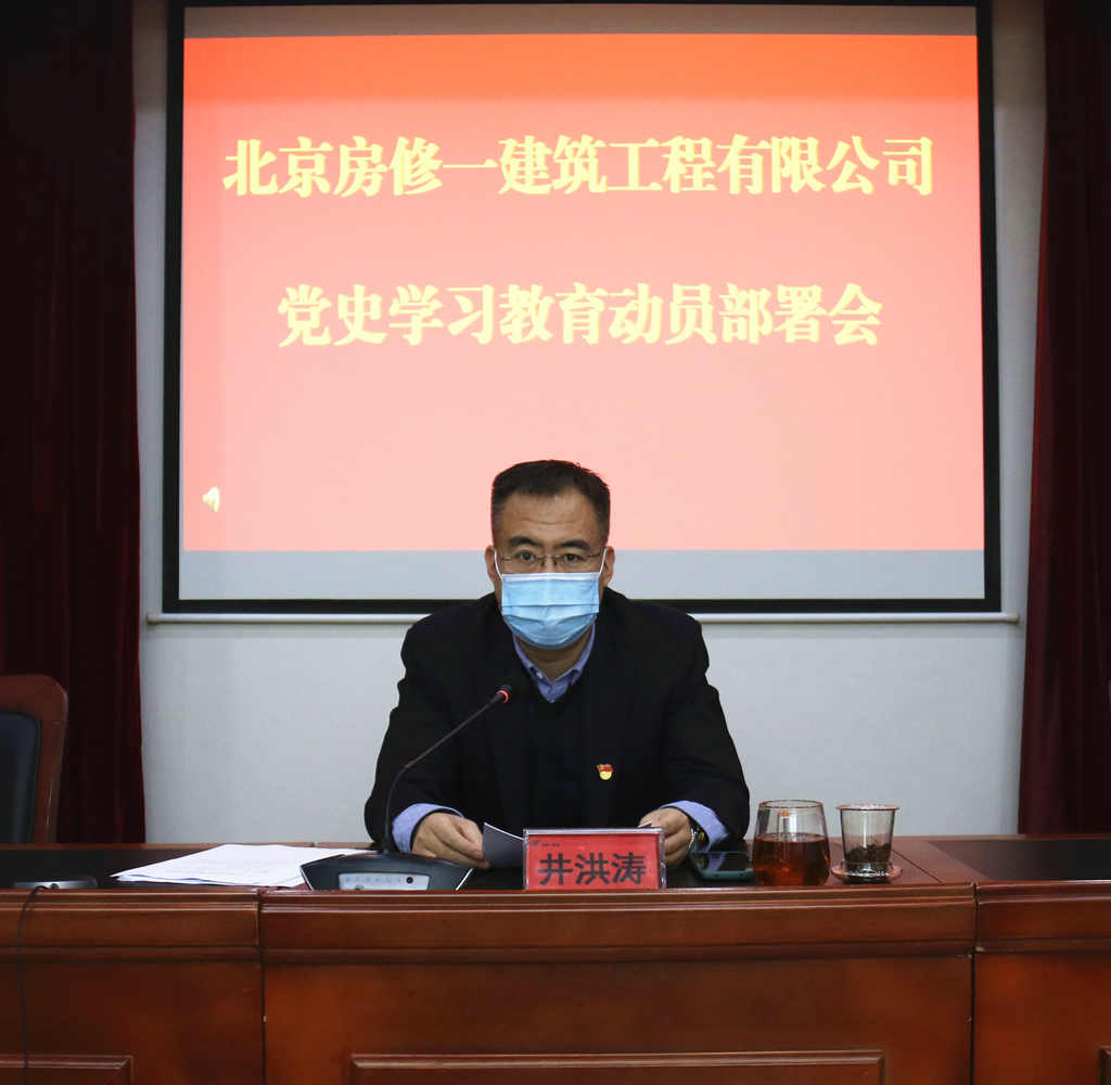 3月30日上午,房修一建筑公司黨委召開黨史學習教育動員部署會,公司黨委書記、董事長、黨史學習教育領導小組組長井洪濤出席會議并講話。黨委副書記、紀委書記、工會主席徐朝暉主持會議;黨群工作部部長荀靜部署公司開展黨史學習教育的工作方案。