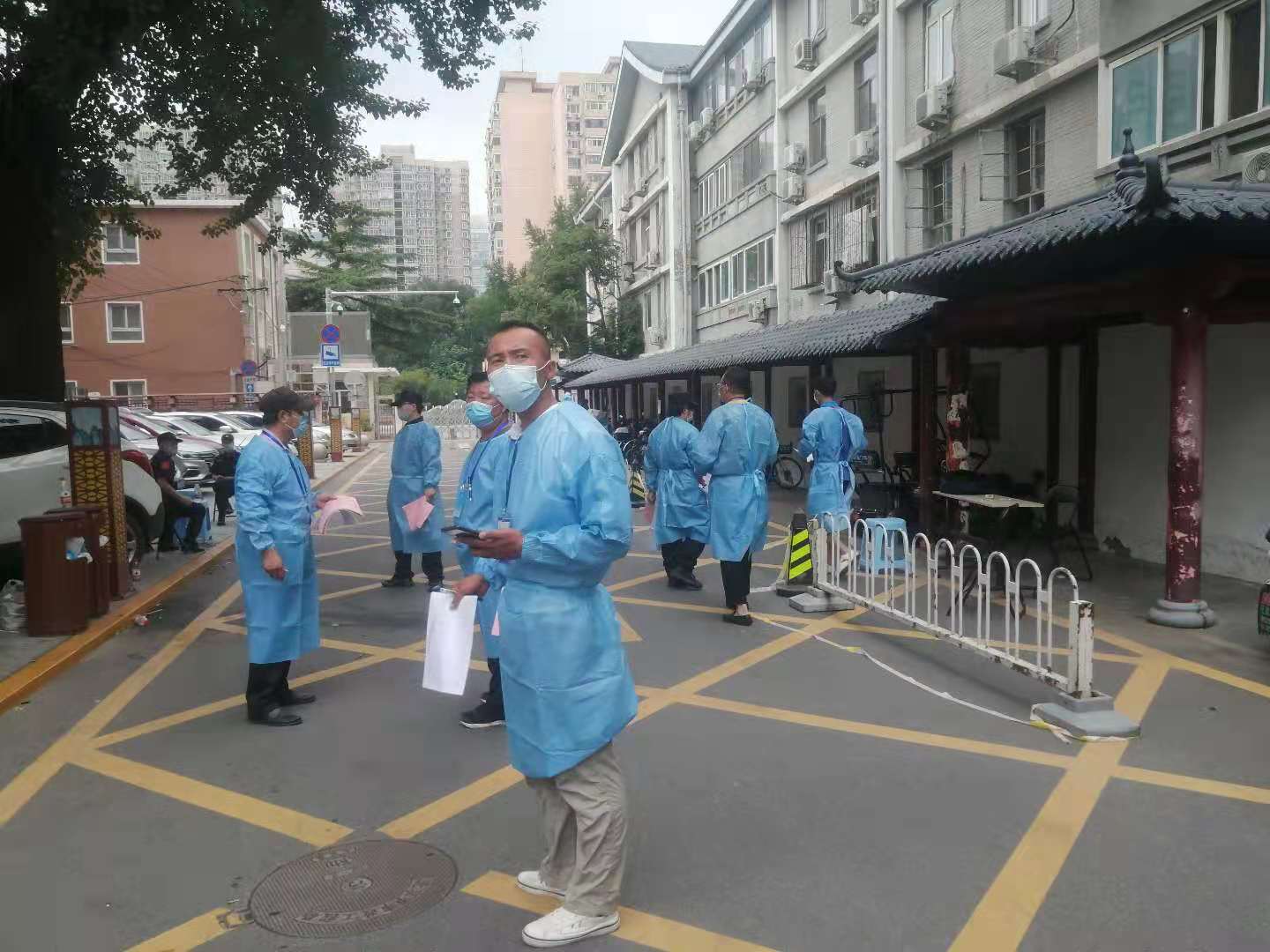 8月2日海淀區(qū)甘家口國興家園小區(qū)出現(xiàn)1例新冠肺炎確診病例的消息引起了房修一建筑所屬北京世紀美嘉物業(yè)管理有限公司的高度重視。世紀美嘉德外項目部管理的新苑街10號院與國興家園只有一墻之隔,車公莊西路7號院距離國興家園也只有幾百米的距離,這兩個小區(qū)都在甘家口街道要求實施封閉管理的范圍內。世紀美嘉公司要求項目部要全力支持配合街道、社區(qū)的工作,提醒職工做好個人防護。項目經(jīng)理同社區(qū)主任、工作人員保持實時聯(lián)系,及時進行溝通,隨時聽候社區(qū)的工作安排。按照社區(qū)要求,當天下午項目經(jīng)理賈連海帶隊,組織了一支臨時防疫小組,在社區(qū)工作人員的指導下迅速開展起了各項工作。下午2點驕陽似火,物業(yè)人員在現(xiàn)場維護核酸檢測隊伍秩序、在小區(qū)門口值守攔截出入人員、代居民收送快遞,每個人都汗流浹背,但沒有一個人喊累、喊苦的。面對不聽勸阻執(zhí)意要出小區(qū)的人員,還要耐心細致的為其做工作,勸導他們要按照政府要求,配合小區(qū)封閉管理,只有這樣才能有效控制疫情的傳播,保證大家的安全。在社區(qū)、物業(yè)的共同努力下,截止到下午6點完成了世紀美嘉所轄兩個院落全部住戶的核酸檢測工作。