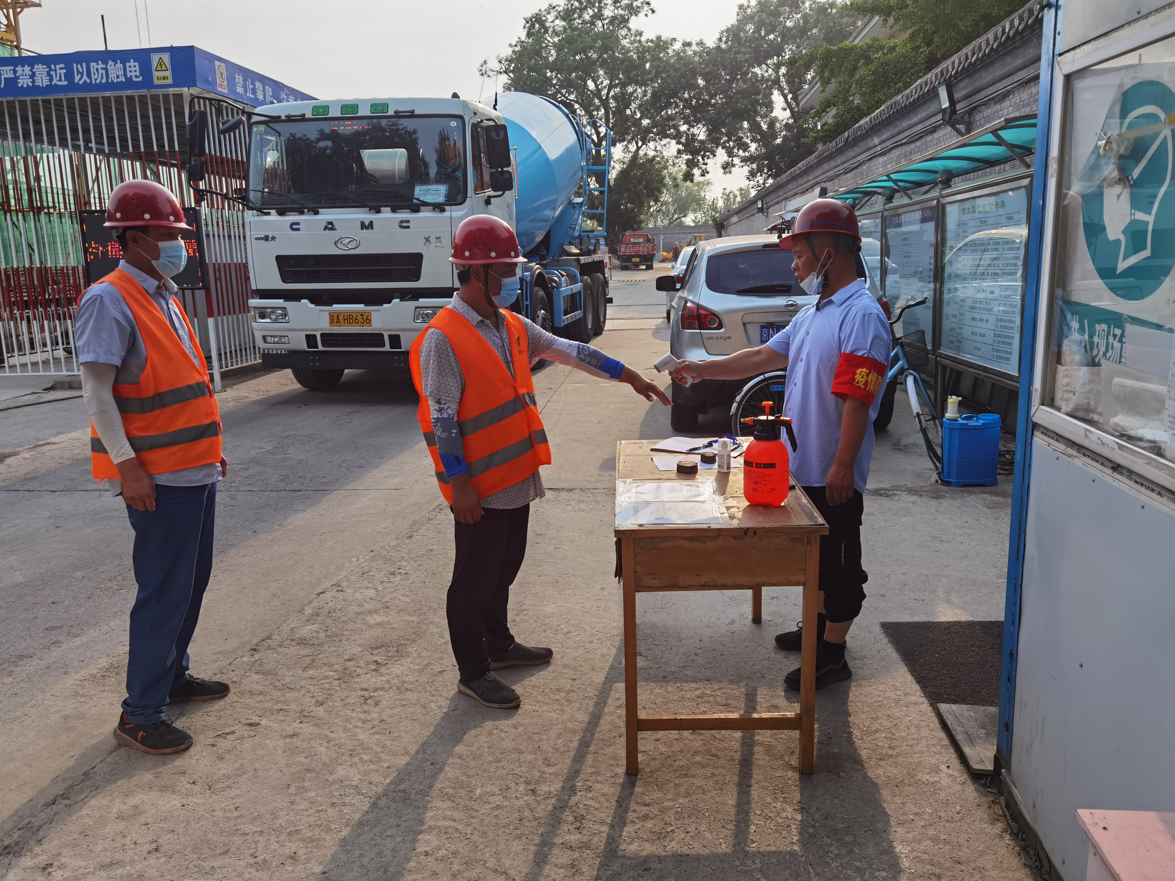 房修一建筑第七分公司認(rèn)真貫徹落實首開、房地、房修一公司發(fā)布的相關(guān)部署要求,分公司疫情防控領(lǐng)導(dǎo)小組迅速召開緊急會議,再次重點強調(diào)“疫情防控、生產(chǎn)建設(shè)必須做到兩不誤”。第七分公司承施的81-5項目作為政治保障重點工程,專題部署了防疫、防火、防汛等項目安全工作,全力保障政治工程安全有序進(jìn)行。項目部建立了24小時值班制度,進(jìn)行封閉式管理。嚴(yán)把關(guān)鍵出入口,在工地大門口設(shè)置消毒地墊,地墊上使用84消毒液進(jìn)行噴灑,保持濕潤;嚴(yán)格落實防疫措施,包括每周進(jìn)行一次流調(diào)、組織進(jìn)行核酸檢測、配發(fā)防疫物資(口罩、消毒液、洗手液),監(jiān)督每日三次定時消殺和測溫,疫情解除前,施行封閉式管理期間,無特殊原因禁止人員外出。日常就餐嚴(yán)格按照一米線間隔打飯,并安排人員分時、分批錯峰就餐;仔細(xì)登記場外資料,每日對通勤、臨時進(jìn)出場人員進(jìn)行行程統(tǒng)計等;外來人員持48小時內(nèi)核酸陰性檢測證明,經(jīng)過測溫、手部消毒、更換新口罩、掃描登記健康碼、展示行程碼后才能進(jìn)入工地,車輛須進(jìn)行消毒后方可入內(nèi)。同時要求各參建方實時、精準(zhǔn)掌握全部人員情況(包括人數(shù)、基本信息、行程及中高風(fēng)險接觸信息,做到屬地觀察、實名篩查、實名制返京、相關(guān)信息確保每日更新),積極組織開展防疫教育工作,完善防疫物資儲備,做好疫情預(yù)防、應(yīng)急處置工作,按照疫情防控專項方案對施工現(xiàn)場和生活區(qū)加強管控措施。