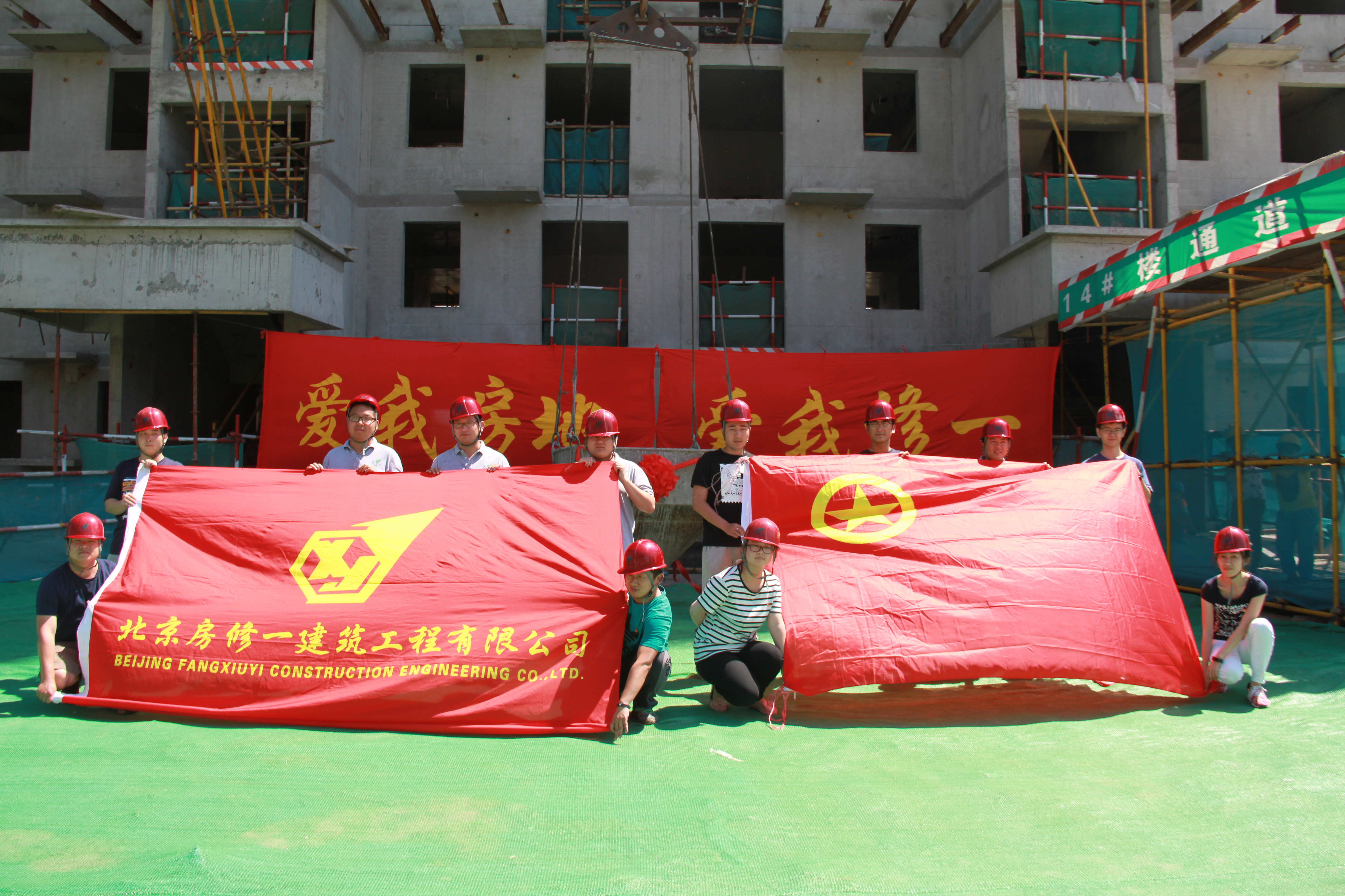 劉占山同志到達(dá)現(xiàn)場(chǎng)后一邊聽取工作人員介紹,一邊視察工地現(xiàn)場(chǎng)情況,對(duì)施工現(xiàn)場(chǎng)的管理、施工技術(shù)予以了充分肯定。視察過程中,劉占山同志還不時(shí)對(duì)項(xiàng)目中的難點(diǎn)問題發(fā)問交流。而后,劉占山等同志到達(dá)該項(xiàng)目14#樓,當(dāng)日恰逢14#樓喜封金頂,在封頂儀式結(jié)束后,黃允錚同志代表集團(tuán)團(tuán)委將“北京市五四紅旗團(tuán)支部”獎(jiǎng)牌授予十分公司團(tuán)支部并表示祝賀。