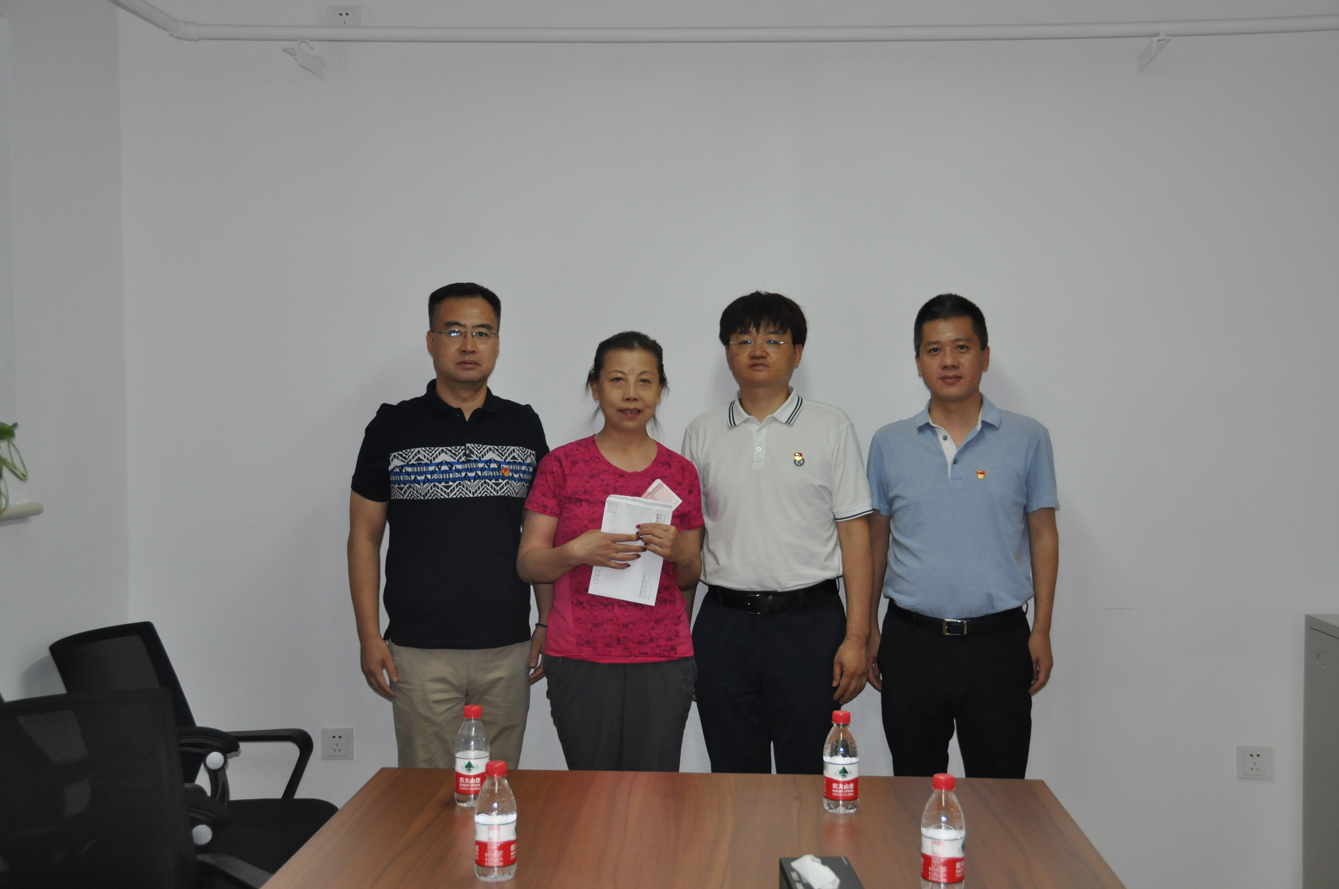 2019年6月25日上午,首開集團黨委常委、財務總監(jiān)秘勇同志赴北京房修一物業(yè)管理有限公司慰問困難黨員賈澗清,公司黨委書記、董事長井洪濤同志,北京房修一物業(yè)管理有限公司黨總支書記、總經(jīng)理林長軍陪同慰問。秘勇同志代表首開集團向賈澗清同志表達了慰問并發(fā)放了困難黨員慰問金。隨后,秘勇同志、井洪濤同志與賈澗清同志進行了親切交談,了解了她的生活、工作情況以及病情,并鼓勵賈澗清同志積極養(yǎng)病,樂觀對待工作和生活,希望賈澗清同志無論遇到什么困難,可以向黨組織訴說,兩級黨組織都會盡力幫助解決。